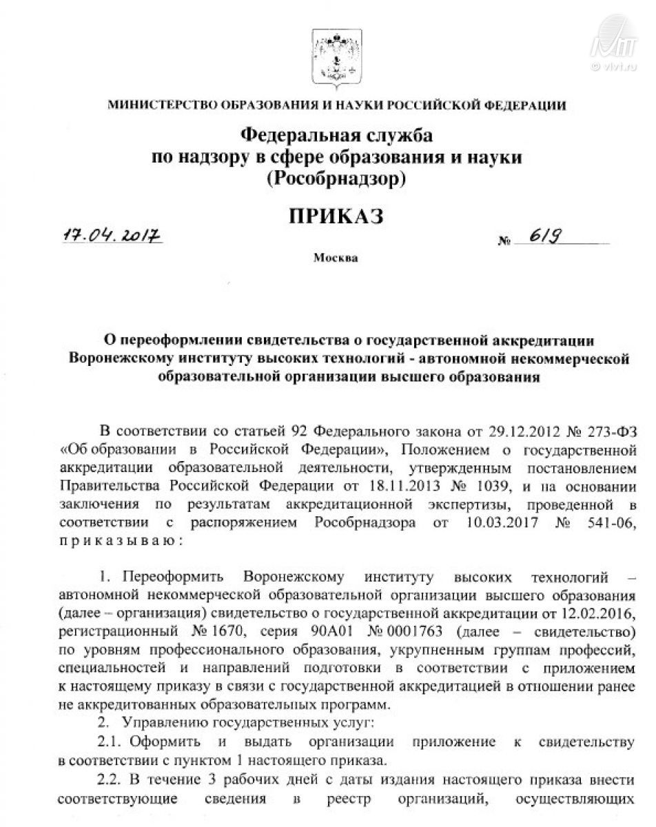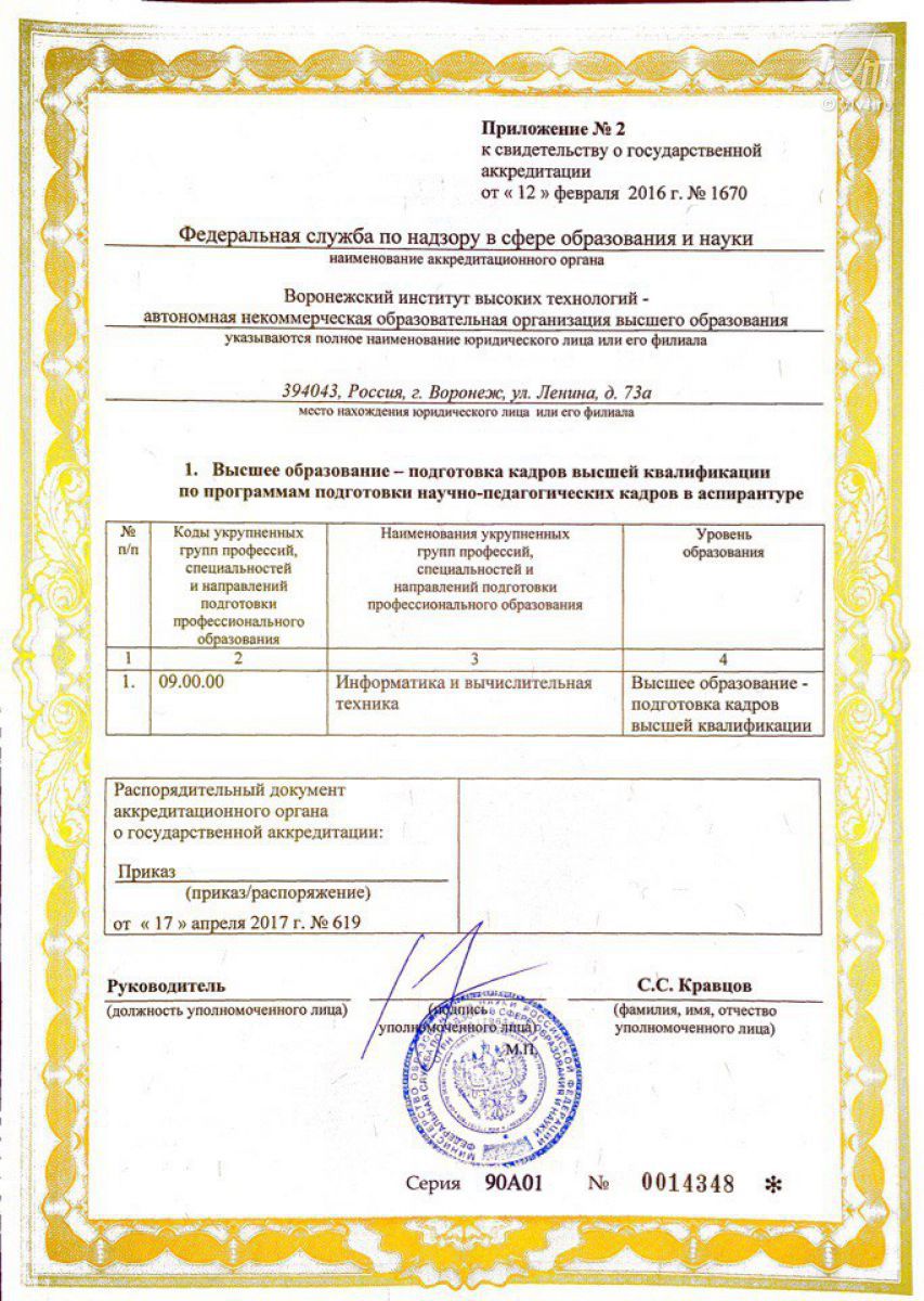 Воронежский институт высоких технологий успешно прошел процедуру аккредитации программ аспирантуры.